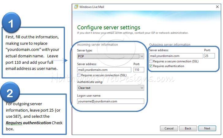 4) On the Internet E-mail settings screen, fill out the information with your username and domain information.